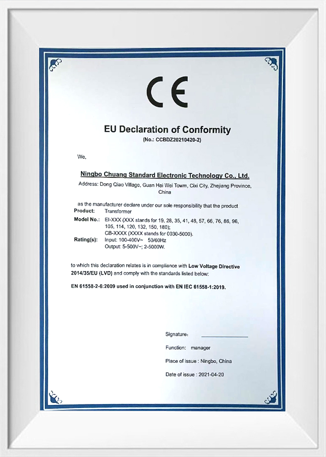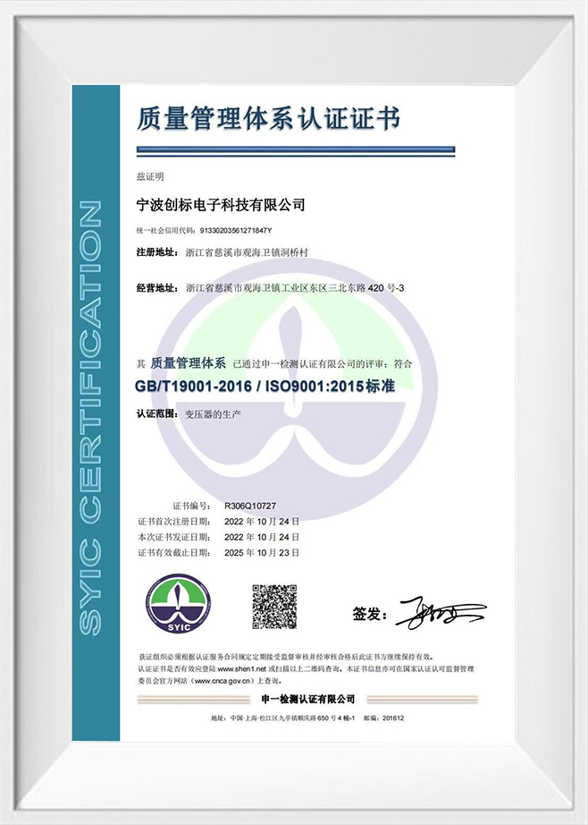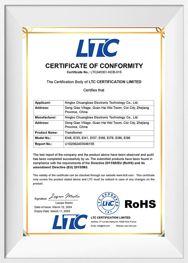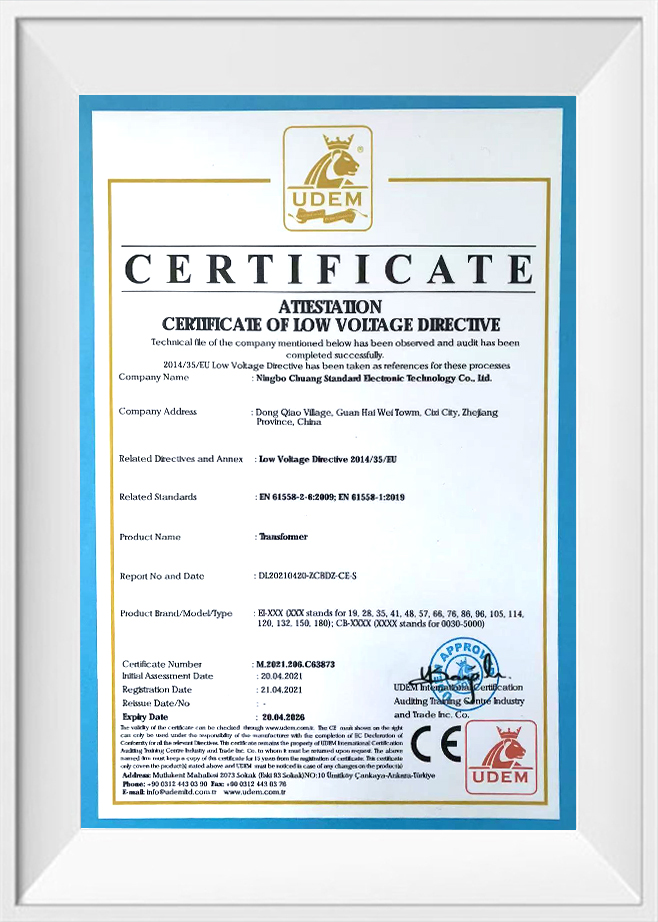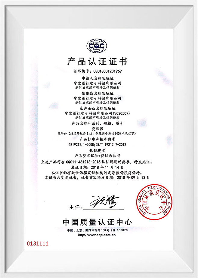 Ningbo Chuangbiao Elektronik Teknoloji, her türlü elektronik transformatörün profesyonel bir üreticisidir. Şirket 2010 yılında kuruldu.